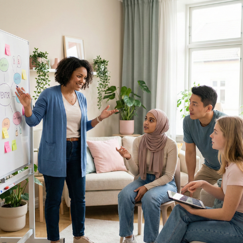 Our team of experienced mentors brings a blend of expertise and genuine care to every interaction. We offer a safe, non-judgemental space where young individuals can explore their ideas, share their challenges, and discover their potential. Through open communication, encouragement, and practical support, we help them build the foundation for a fulfilling and meaningful life.